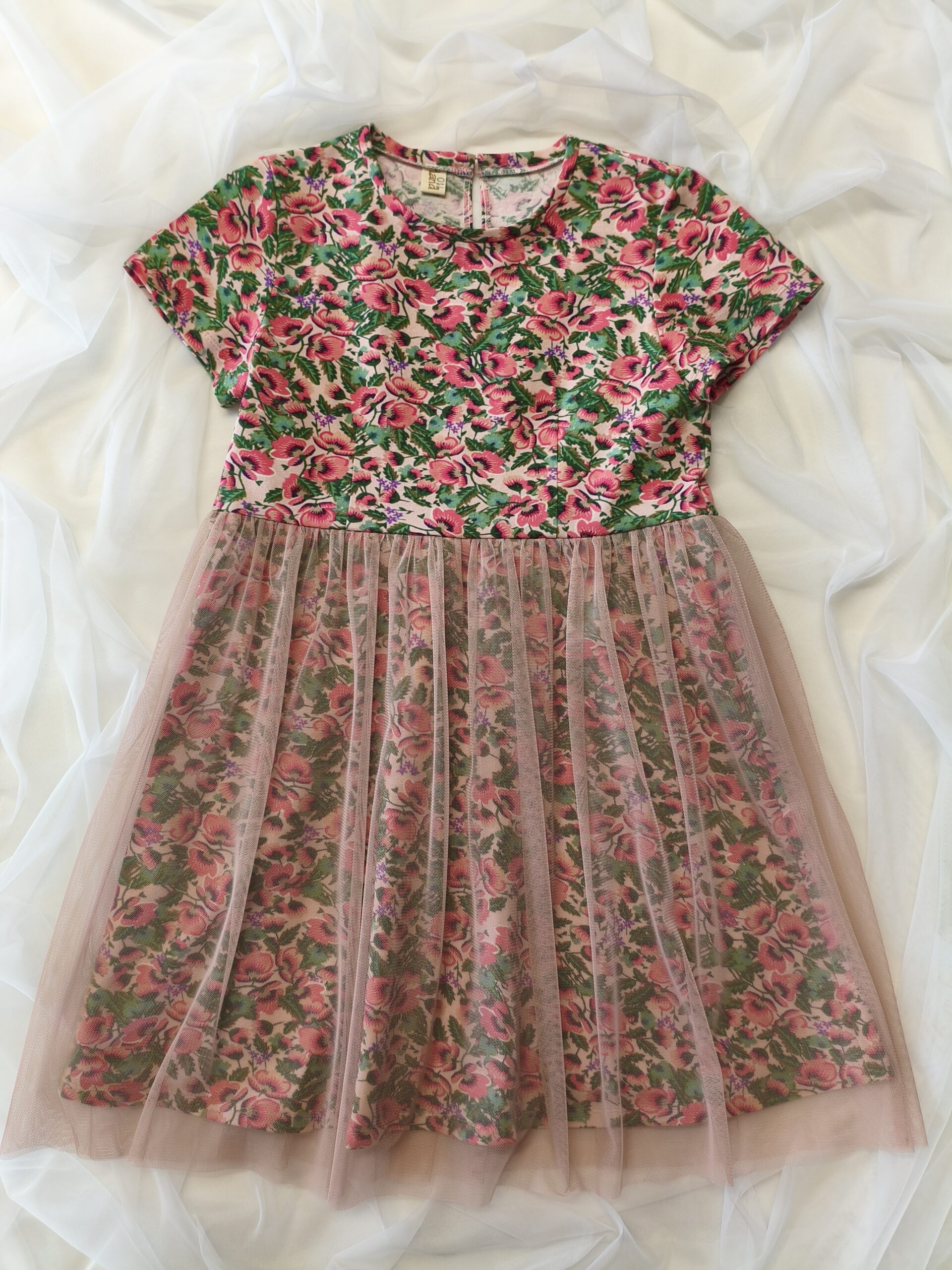Plānās kokvilnas trikotāžas kleita ar tillu svārku daļā būs piemērota gan svētkiem, gan ikdienas valkāšanai.