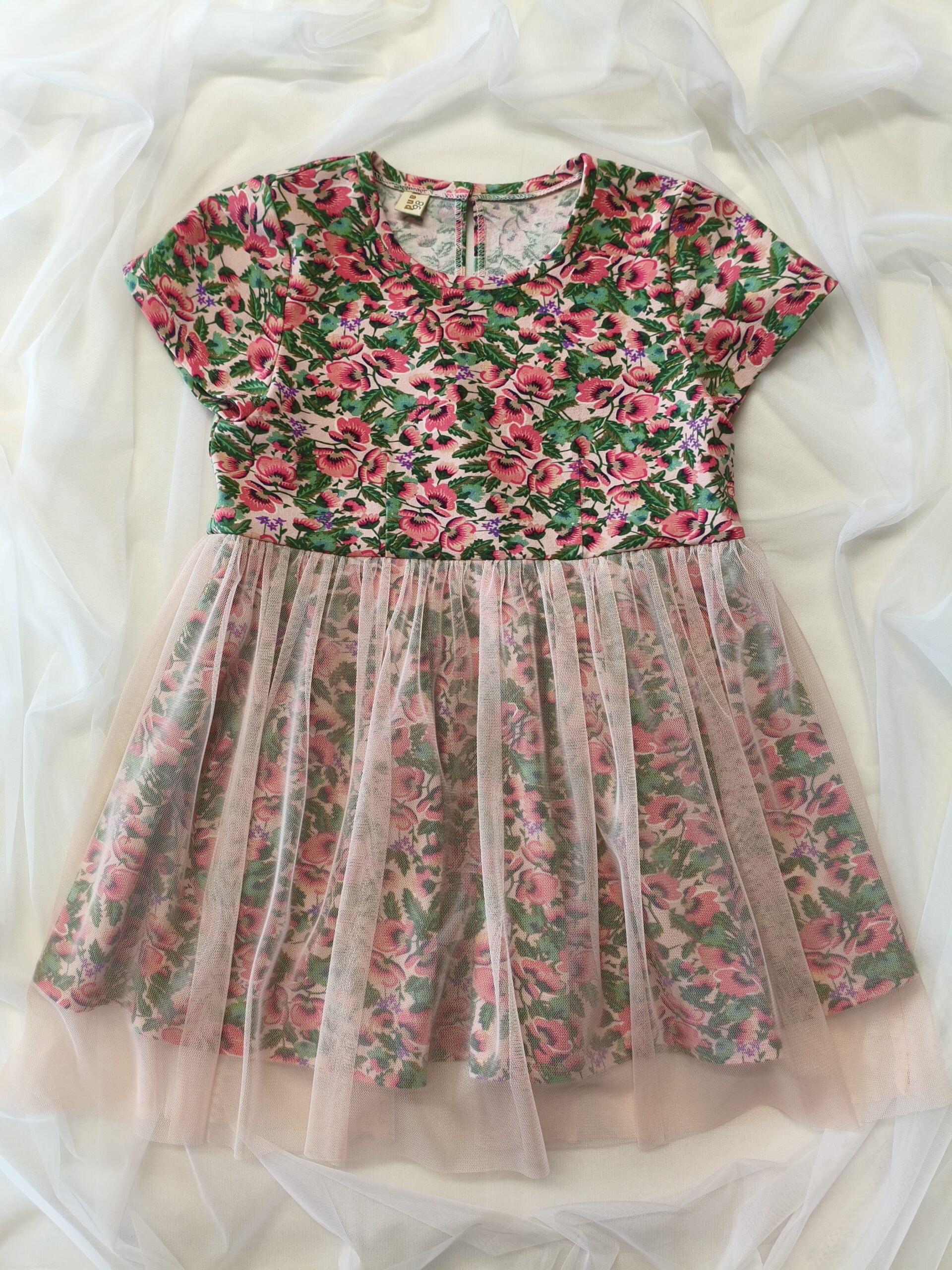 Plānās kokvilnas trikotāžas kleita ar tillu svārku daļā būs piemērota gan svētkiem, gan ikdienas valkāšanai.