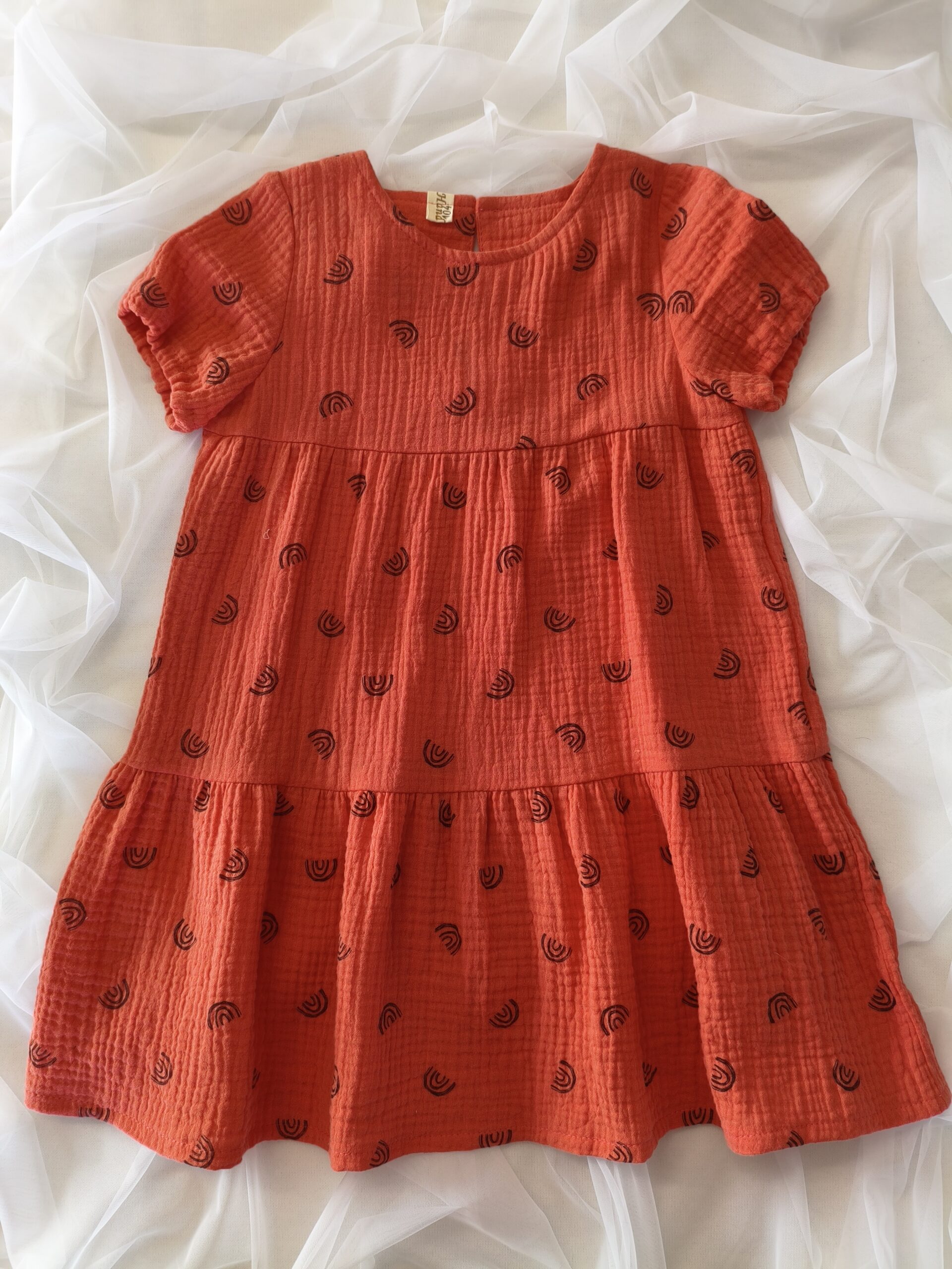 Kleita no mīkstā un elpojošā muslīna auduma lieliski iederēsies jūsu bērna garderobē, piemērota ikdienas valkāšanai.