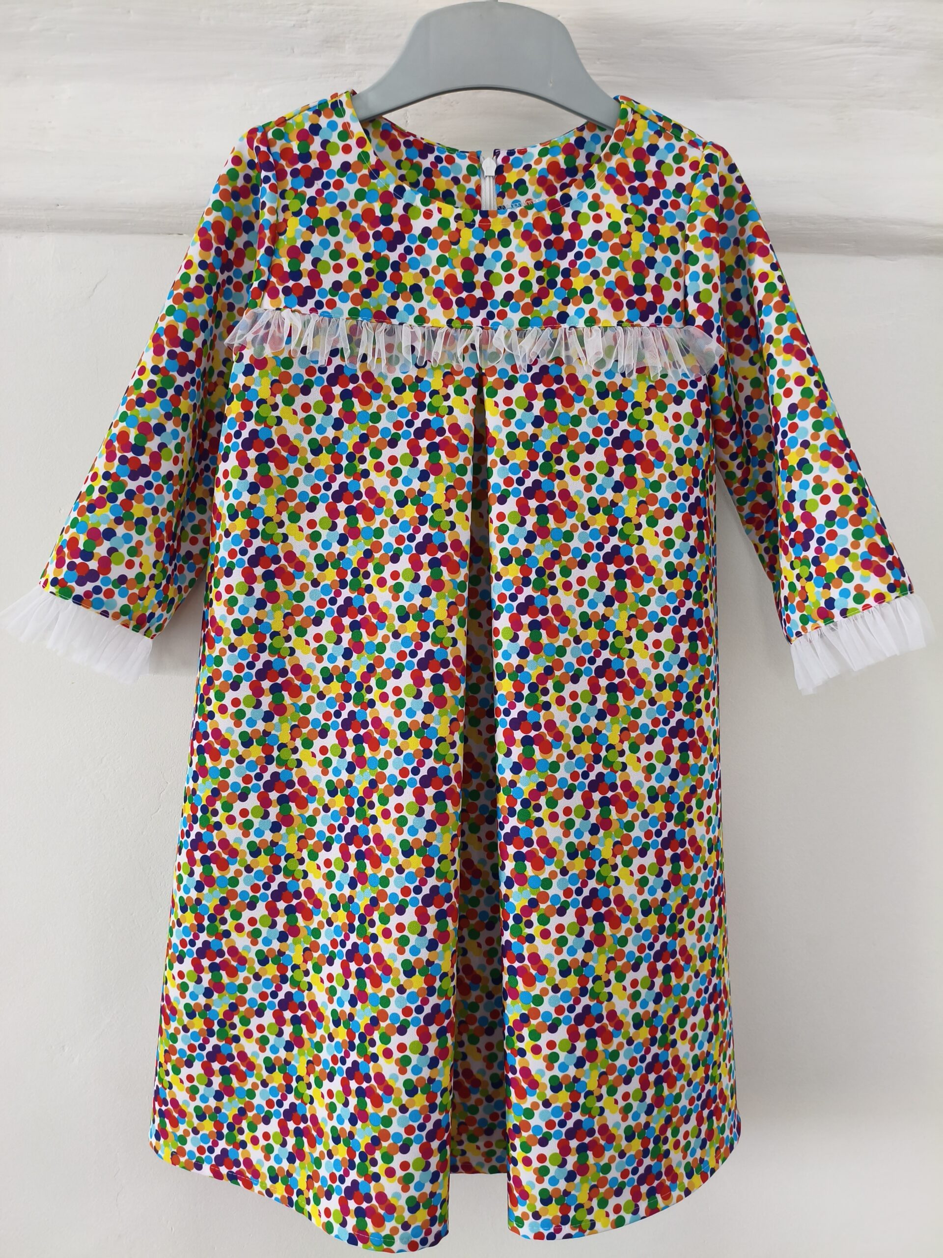 Kleitai ar košo pumpiņu rakstu ir pusgarās piedurknes, lieliski noderēs svētku apmeklējumam.